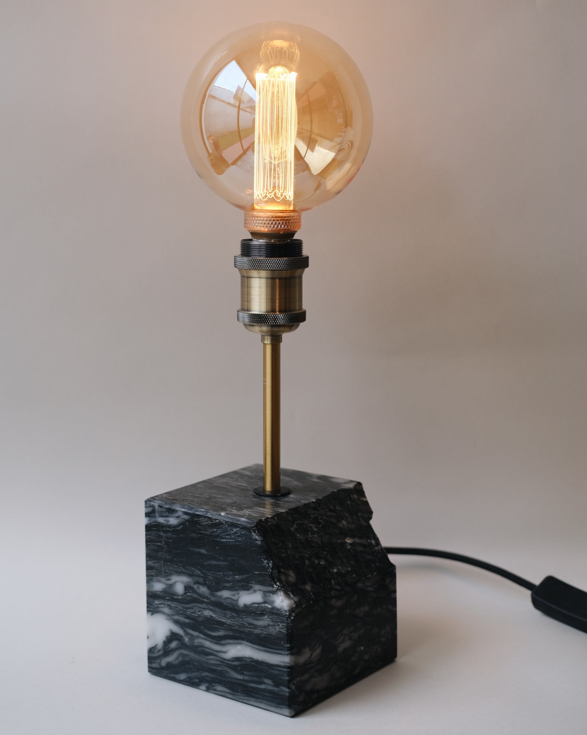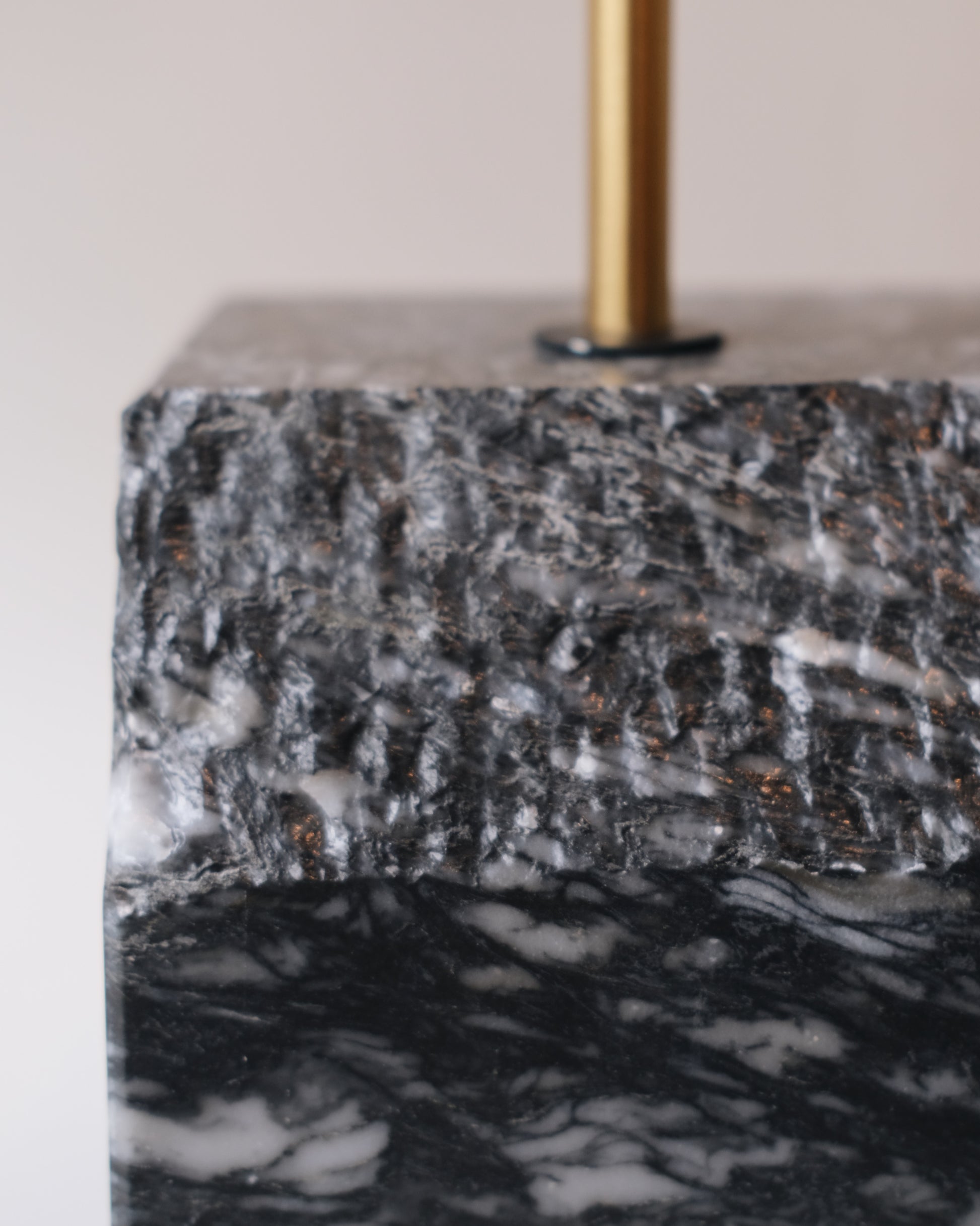 Lámpara de buró perfecta para generar un ambiente cálido en tu mesa de noche, oficina o sala de estar. Con base de mármol gris mate, varilla y socket de latón.